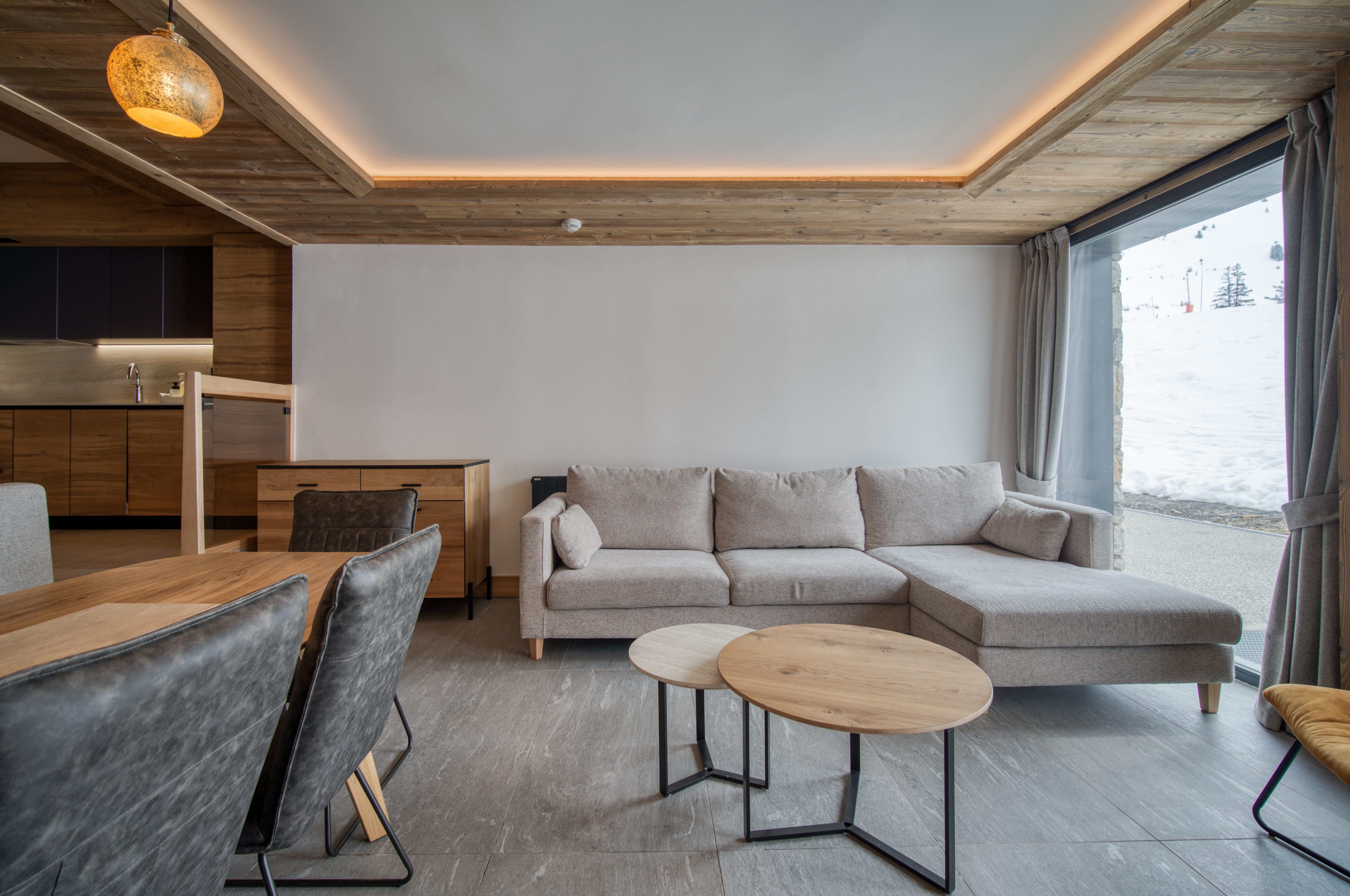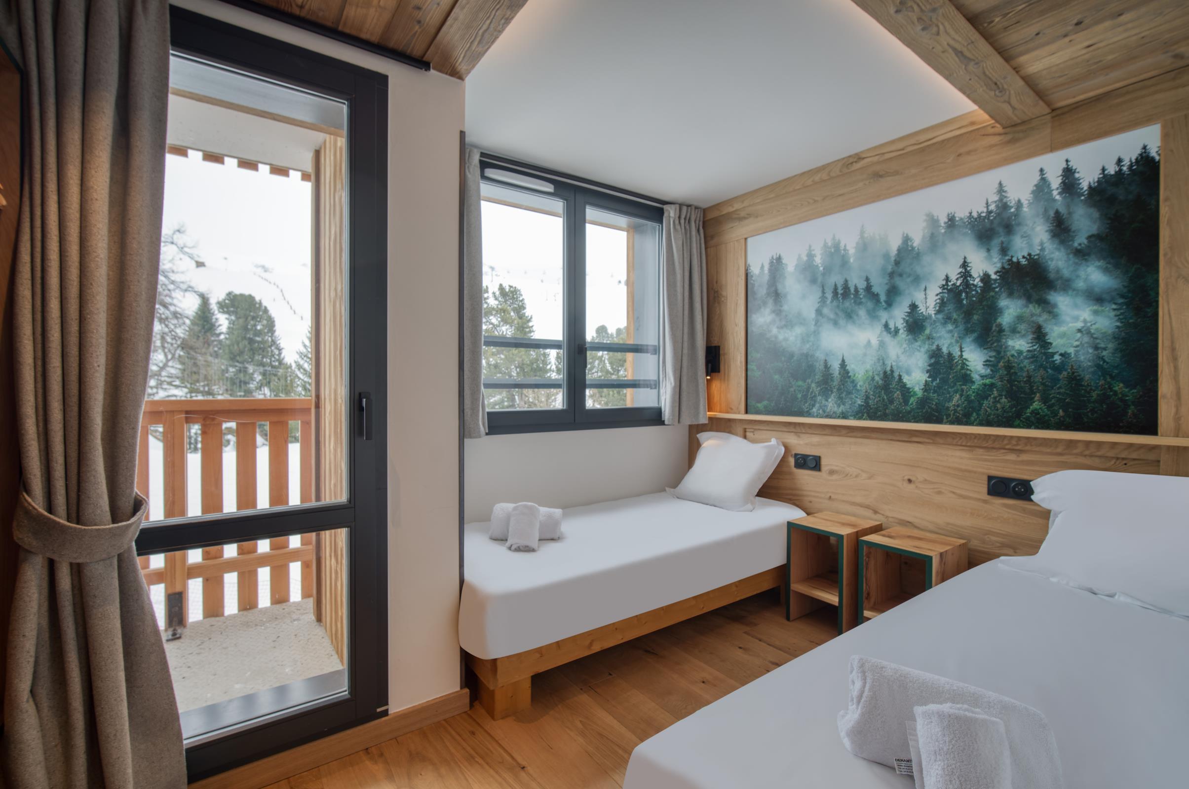 Le Turquoise 0.1 est un triplex situé au R0, R1 et R2 de la résidence. Il peut accueillir confortablement toute votre tribu avec ses 4 chambres et ses 3 salles de bain. Il vous offre une vue imprenable sur les pistes avec une grande terrasse aménagée. Profitez également d'équipements haut de gamme, d'un service hôtelier attentionné, de matériaux de qualité et d'un design soigné pour une expérience de vacances au ski 100% montagne.